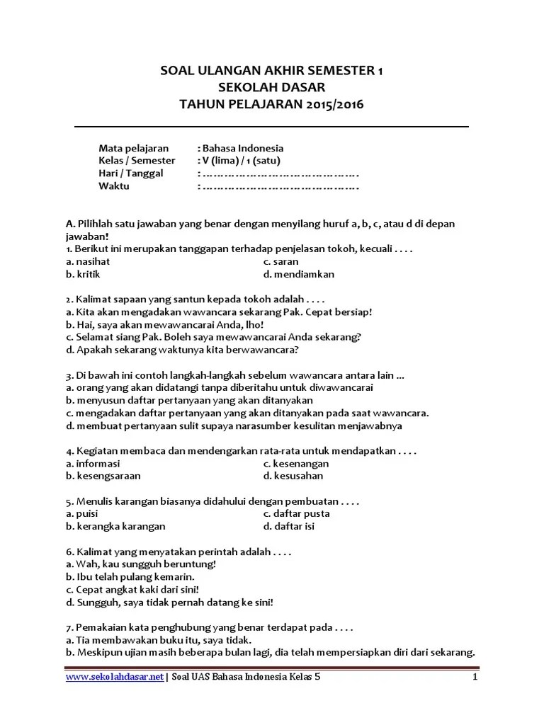 Soal uts bahasa indonesia kelas 5 semester 1(2).doc. Soal tematik kelas 5 semester 2 dan kunci jawaban. Ulangan tengah semester ii tahun pelajaran 2016/2017. Contoh soal uas ganjil mtk sd kelas 3 semester 1.pdf. Prasasti ciaruteun adalah salah satu peninggalan kerajaan.